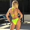 Le haut de maillot de bain triangle PEPS de couleurs jaune fluo qui mettent votre peau bronzée en valeur. Coques amovibles. Se noue dans le dos et autour du coup. A associer avec le bas de la même gamme.